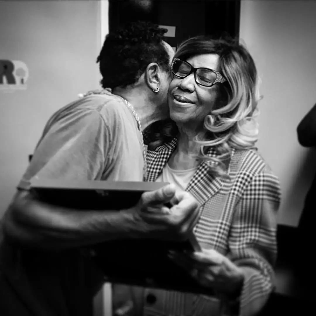 Aretha Franklin presents a City of Detroit Award of Recognition to Smokey Robinson before his performance at Chene Park Amphitheater.