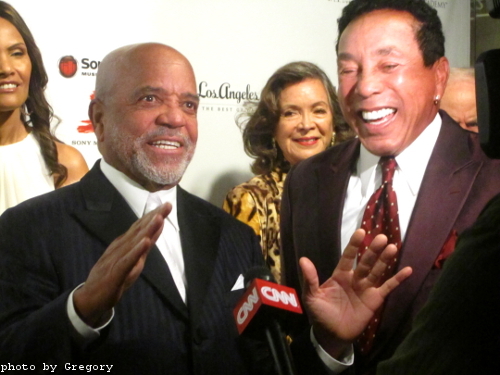 Smokey Robinson sang for us Monday night, and specifically to his best friend, Motown Records founder Berry Gordy, Jr. Let me tell you: the terms \”singer,\” \”businessman\” and \”record label\” may clue you in a bit, but this was more. Muchmore. These men got the whole world dancing, swaying, singing along (and they still do). Mr. Robinson\’s angelic vibrato may sing words, but in attempts to define it, it defies them! And words cannot convey the beauty and import of this event. But for you, I\’ll give it a go.